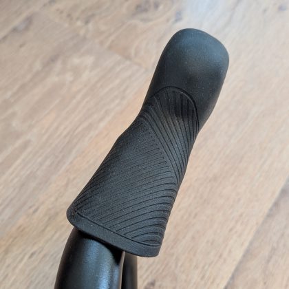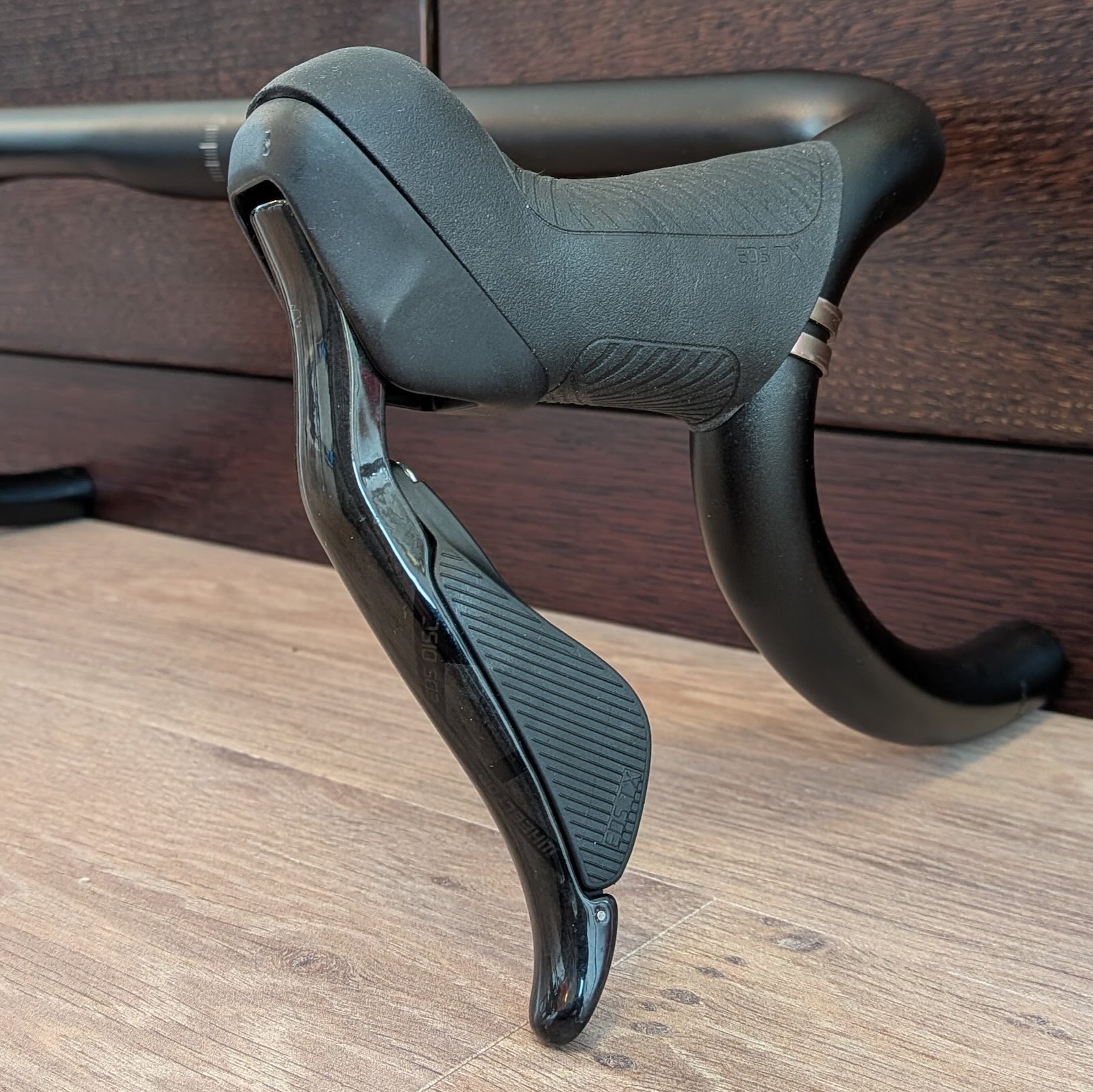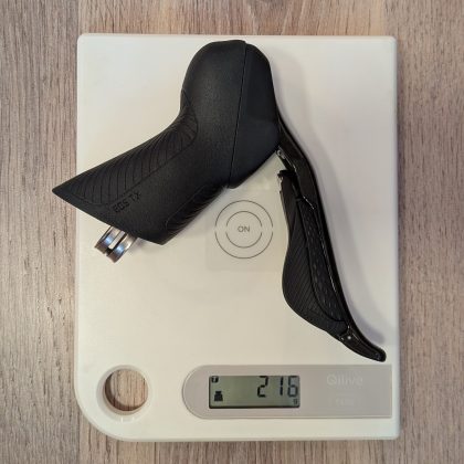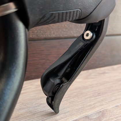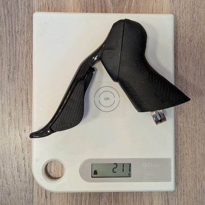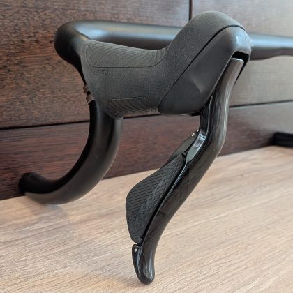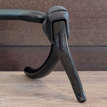 Ebben a tekintetben a fékváltókar a legfontosabb, mert a tekerés nagy részében azt fogjuk. Ergonómiailag hasonlít a Shimanora, hasonló hosszúságú az a rész ahol fogjuk, de széltében karcsúbb. A csúcsa is jóval kisebb, mint a jelenlegi Tiagrámnál, a karbonból készült fékkarok pedig annál jobban kifelé állnak.