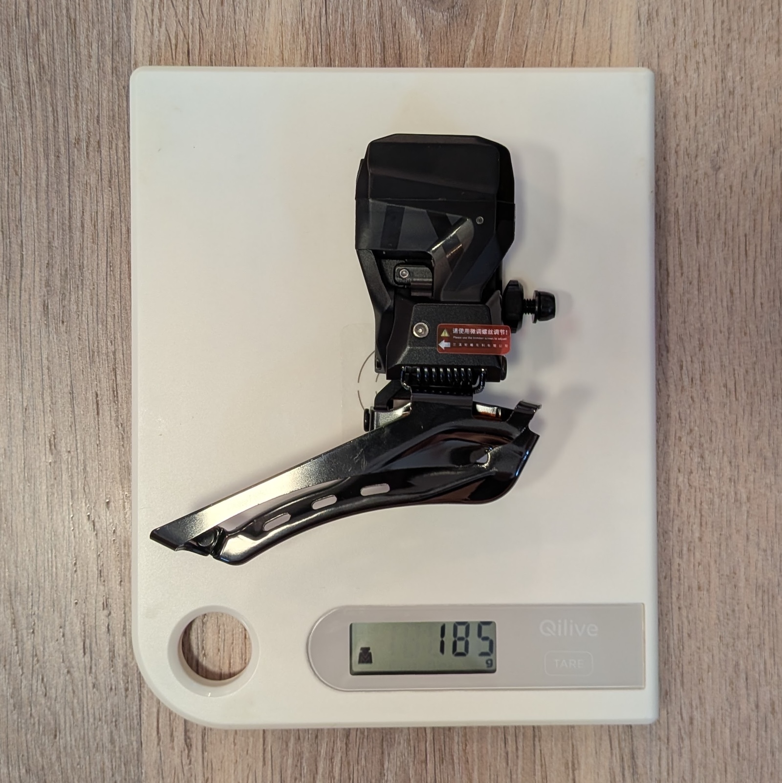 Az első váltó 16 fog különbséggel bír el, a maximális fogszámot viszont 53-ra írják ami furcsa, mert a Dura-Ace-nál már 54-40-es verzió a standard kiadás, és a profiknál gyakran ennél nagyobb tányérok is felkerülnek. Az akku logikusan csak 500 mAh, mivel elől jóval ritkábban váltunk.