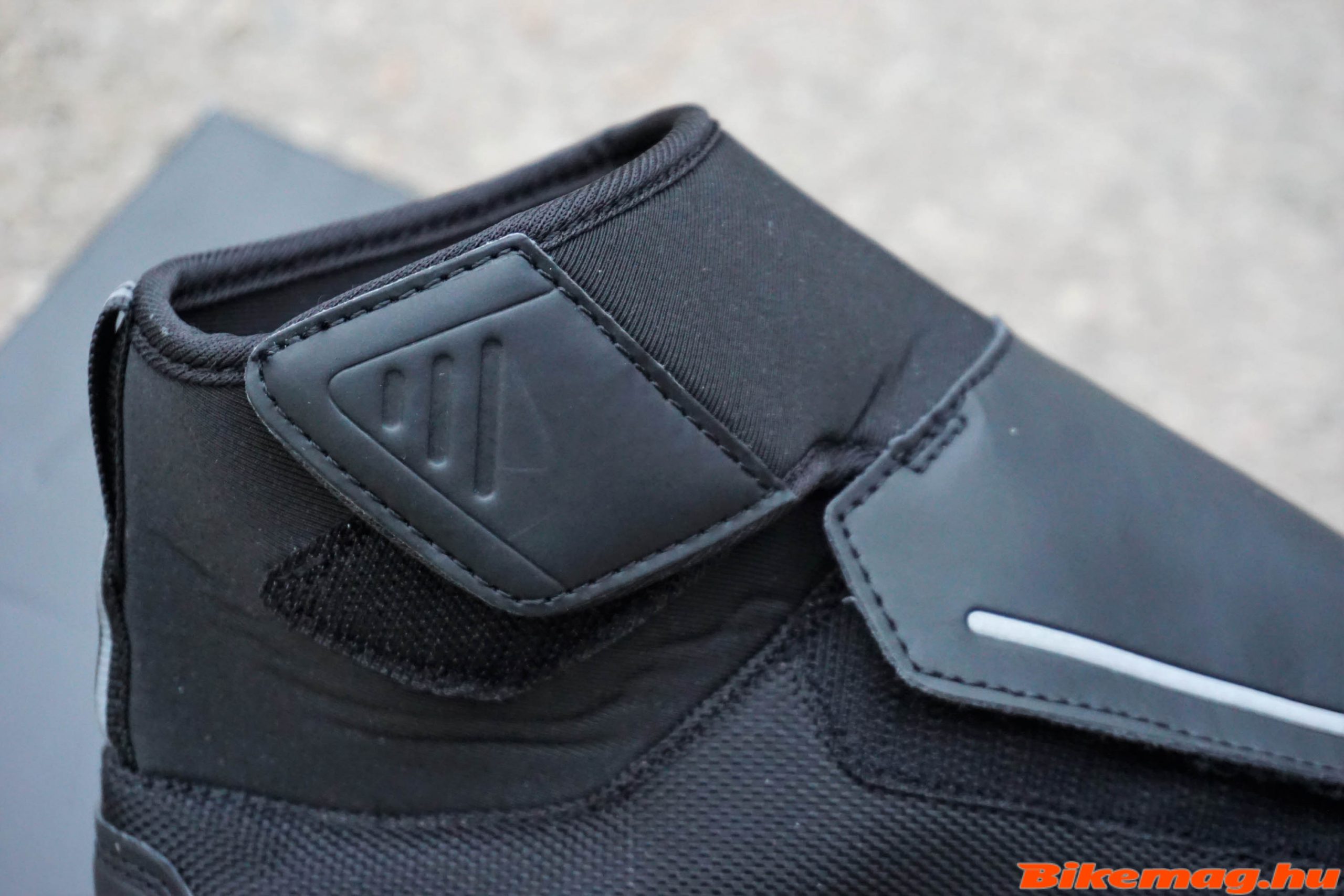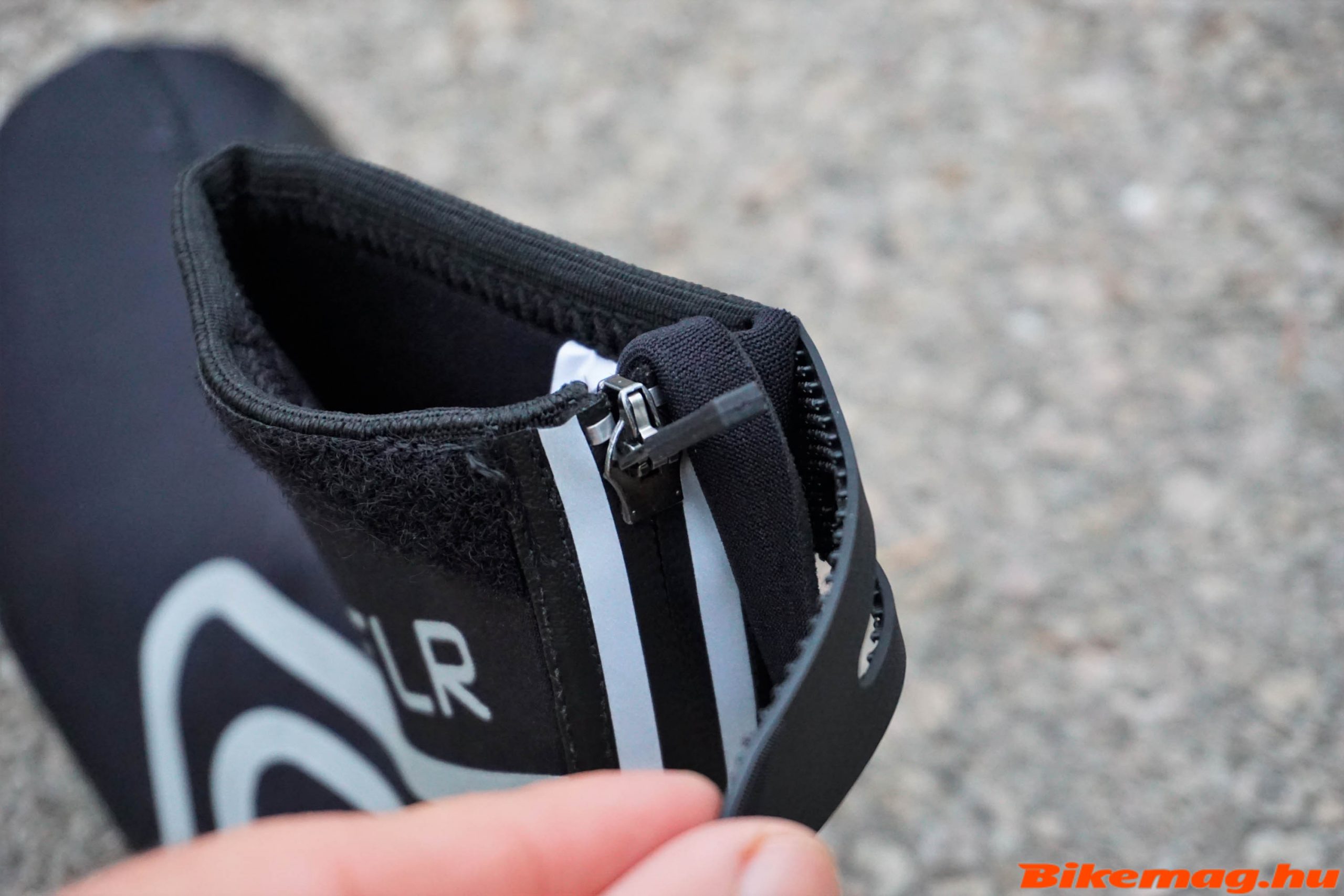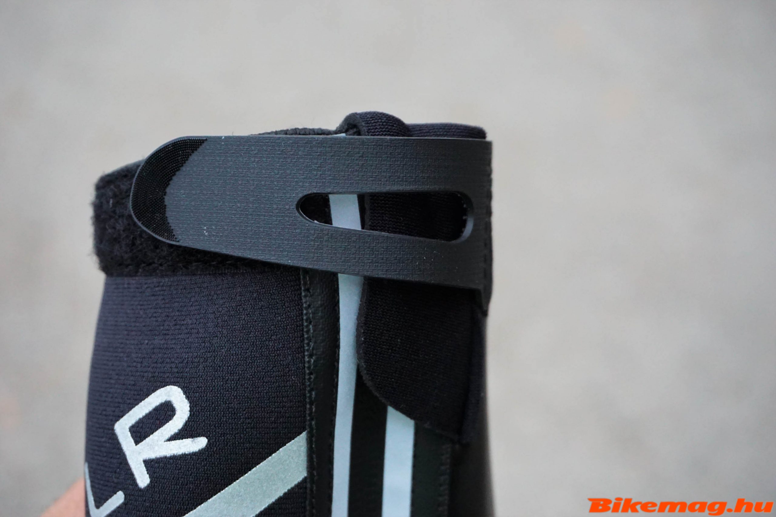A Defender rögzítési rendszere nem túl gyakori megoldás, lényegében egy gyorsfűzőt kapott (terepfutó cipőknél lehet látni ilyet gyakran), amit tényleg nagyon gyorsan meg lehet húzni és nem igazán lazul vissza. Ezt a megoldást az FLR azzal indokolja, hogy télen kesztyűben, vagy lefagyott kézzel is könnyen tudjuk állítani. Ez valóban, igaz, bár nekem a tekerőkkel sem volt még soha problémám télen (kivéve ha telementek sárral). A gyorsfűzőket egy tépőzáras felsőrész takarja, ami nem engedi, hogy bejusson ide a sár és a kosz.