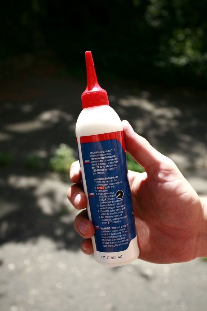 Használat előtt alaposan rázzuk fel a flakont, hogy elkeveredjenek az apró rostok. Az adagolóedényben ellenőrizhetjük a tej mennyiségét, a nem tubeless-nem tubeless felni-gumi kombinációnál azt javaslom, ne sajnáljuk a löttyöt, töltsünk bele a 250 ml-es flakon felét egy 2,1-es 29-es gumiba. Ha tubeless felnivel használjuk külsőt, elég a 100 ml is, ugyanez az érték szerintem 26-osnál 100/70-80 ml.