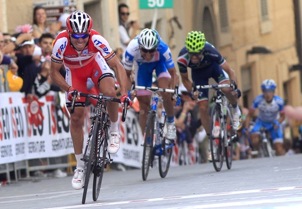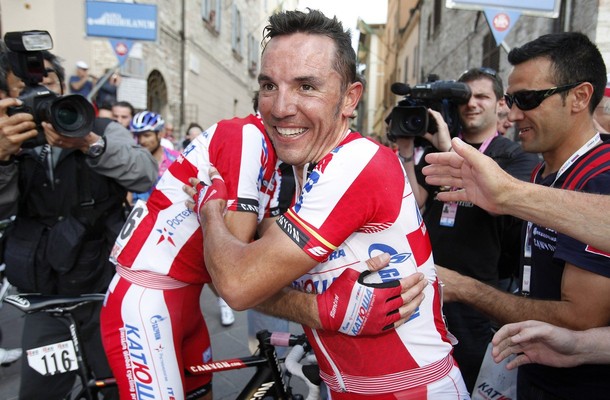 A rózsaszínű trikót viselő katalán Joaquím Rodriguez szereplése emlékeztet Danilo Di Luca 2007-es győzelmére, amikor a „Gyilkos” áttört egy határt, és a meredek befutóval végződő klasszikusok és egyhetes versenyek után GT-n is diadalmaskodni tudott…