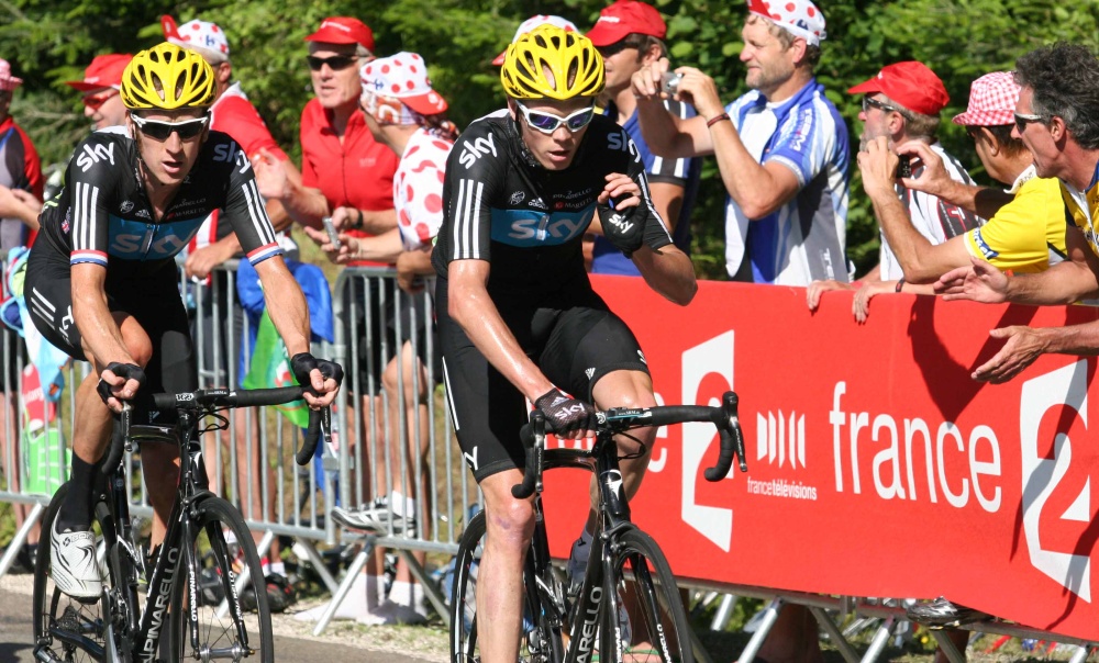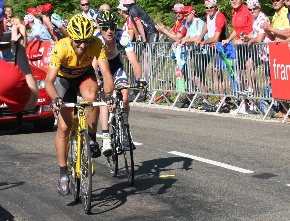 Azok számára, akik egy adott helyszínen várják a versenyzőket, akkor keződnek az izgalmak, amikor a levegőben megjelennek, majd egyre közelednek a TF, a francia állami TV csatorna helikopterei és az úton egyre több rendőrmotoros, piros ASO szervezői kocsi és médiás jármű hajt el. Aztán percek kérdése és felbukkan két villogó motoros rendőr, a TV motorosai és az első versenyzők. Ezúttal egy kisebb csoport érkezett hozzánk elsőként Froome-mal, Wiggins-szel és Cadel Evans-szal az élen, szorosan a nyomukban pedig Nibali, Taaramae, Zubeldia és a többiek. Hamarosan felbukkant a láthatóan keményen kűzdő Cancellara is, akinek ezen a napon meg kellett válnia a sárga trikótól. Egy héten keresztül viselhette a „maillot jaune”-t, és azt hiszem, hogy Ő és a csapat meg a szponzorok is elégedettek lehetnek ezzel.