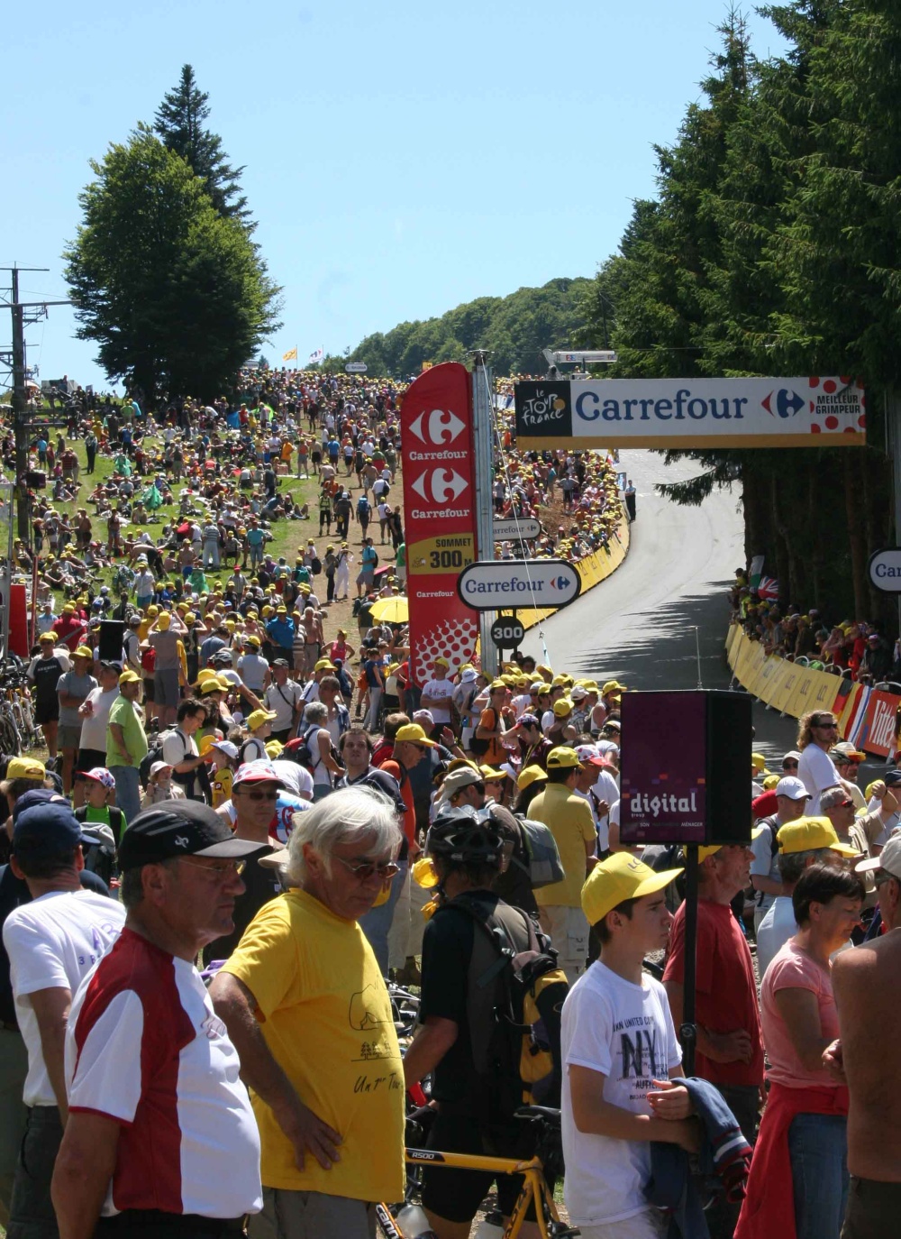 Még órák voltak hátra a reklámkaraván majd a mezőny érkezéséig, de már sűrű sorokban bandukoltak a különböző országokból érkező szurkolók. Mire az 500 métert jelző kapuhoz érkeztünk, már annyian voltak fent, hogy a célt szinte alig lehetett megközelíteni. Azért egy fotó erejéig odavergődtem, aztán egy kis szuvenír vásárlás, „frissítés” és étkezés után indultunk vissza, megfelelő helyet keresni a letelepedéshez és a versenyzők fotózásához.