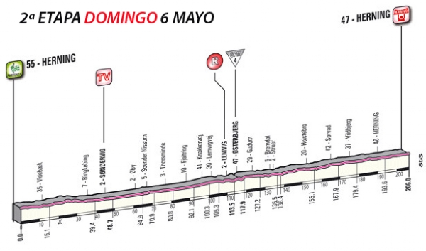 Május 6. – 2. szakasz: Herning – Herning, 206 km Várható befutó: 16:59-17:26