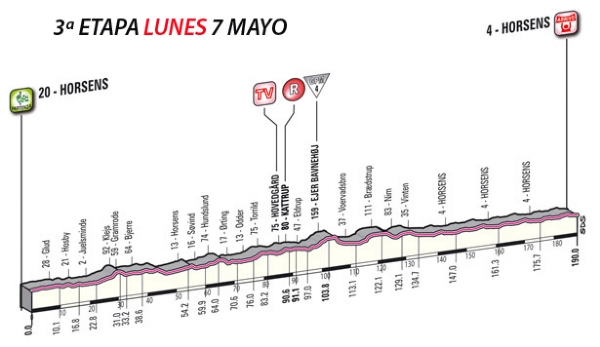 Május 7. – 3. szakasz: Horsens – Horsens, 190 km Várható befutó: 15:48-16:13